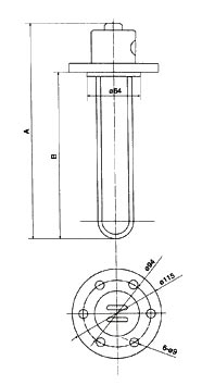 2、 圖中尺寸”B”必須全部侵入油中(并定期檢查)以免燒壞,被加熱油應無腐蝕性氣體。